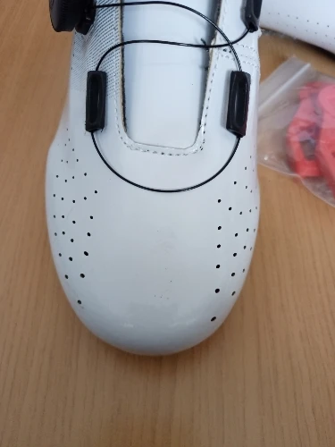 Material da Sola Externa: Nylon rígido com TPU, oferecendo máxima rigidez para transferência de potência e aderência segura ao pedal.